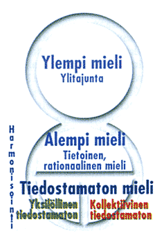 Alempi mieli, joka jakautuu tietoiseen ja tiedostamattomaan mieleen. Jälkimmäinen jakautuu taas yksilölliseen ja kollektiiviseen tiedostamattomaan. Alemman mielen yläpuolella on ylitajunta tai korkeampi mieli, joka on korkeamman Minän mielikapasiteetti.